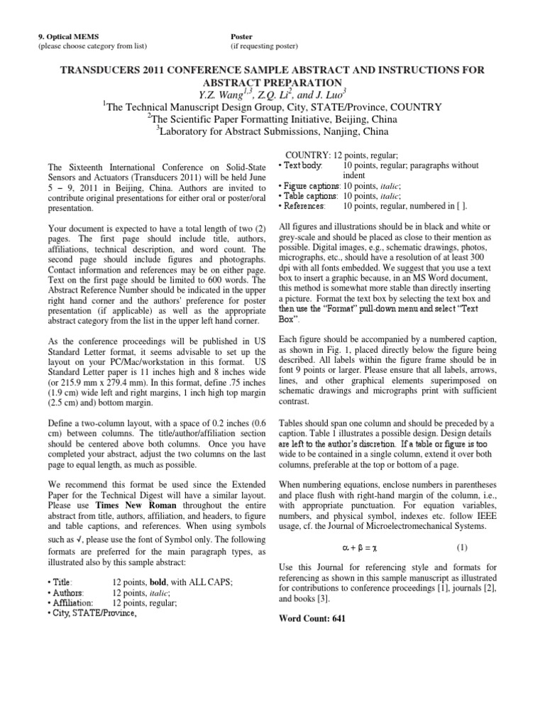 There are two types of abstracts as follows: List of paper presentation samples: The abstract serves to provide information to conference attendees regarding poster presentations when choosing which posters to view (happell, 2008). Download collection of paper presentation samples which are used by previous year final year students from different engineering branches. The formula for how to write an abstract when considering how to write an abstract, follow this formula: Definition and purpose of abstracts an abstract is a short summary of your (published or unpublished) research paper, usually about a paragraph (c. It is useful for a very long report or article and it reflects the organization not content of the. Sample abstract for paper presentation should not be longer than two hundred words and has to be clear to the general public or those people who are not familiar with the topic. Single photon interference by attenuation by randle affholter (physics). Innovative approach to clinical trial feasibility through an investigator consultation network. In the basic format of an apa abstract, the word abstract is centered and without additional font changes. Following the introduction is the body of the paper. As the template for your abstract as it contains all necessary formats and styles.